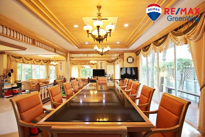 2 ชั้น ที่ดินแปลงใหญ่สุด 399 ตรว. พื้นที่ใช้สอย 453 ตรม. บ้านหน้ากว้าง หลังมุม พร้อมสวนใหญ่ เรือนรับรอง ริม สระว่ายน้ำ มีทั้งหมด 5 ห้องนอน 6 ห้องน้ำ ห้องอเนกประสงค์ ห้องครัว 2 ห้องแม่บ้าน 10 ที่จอดรถ